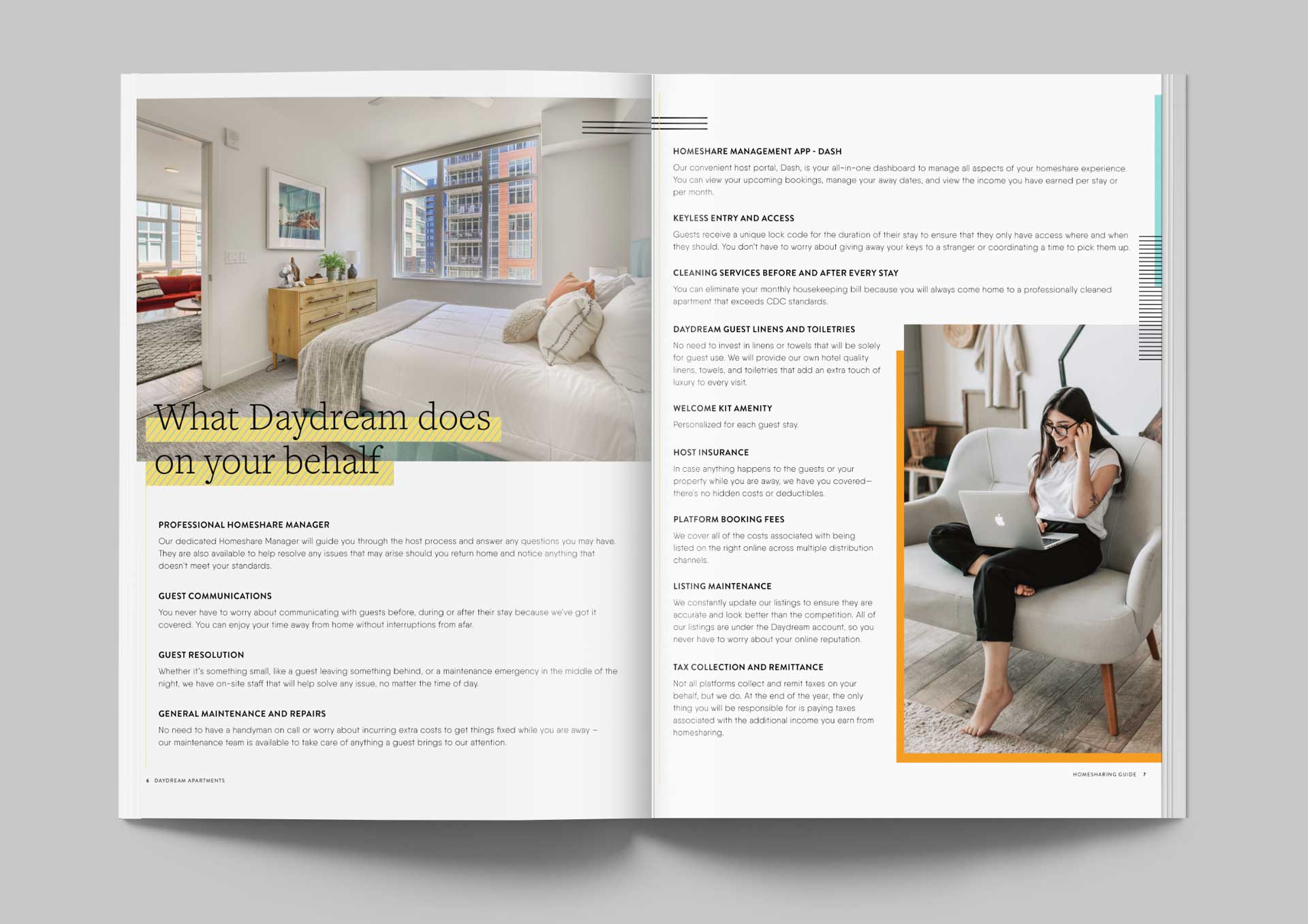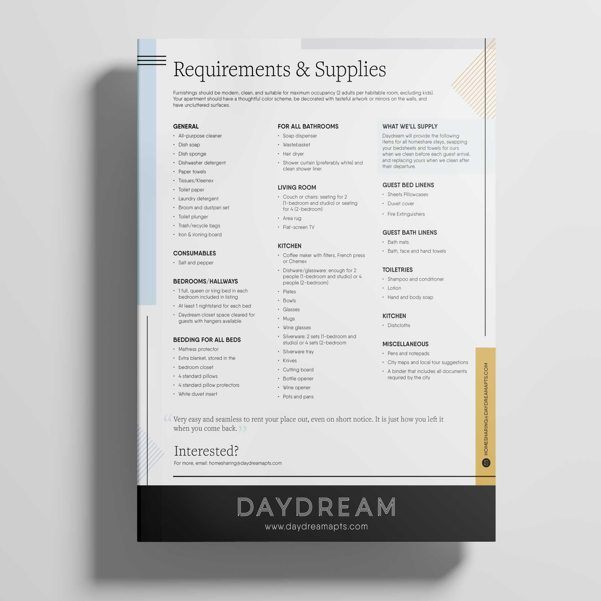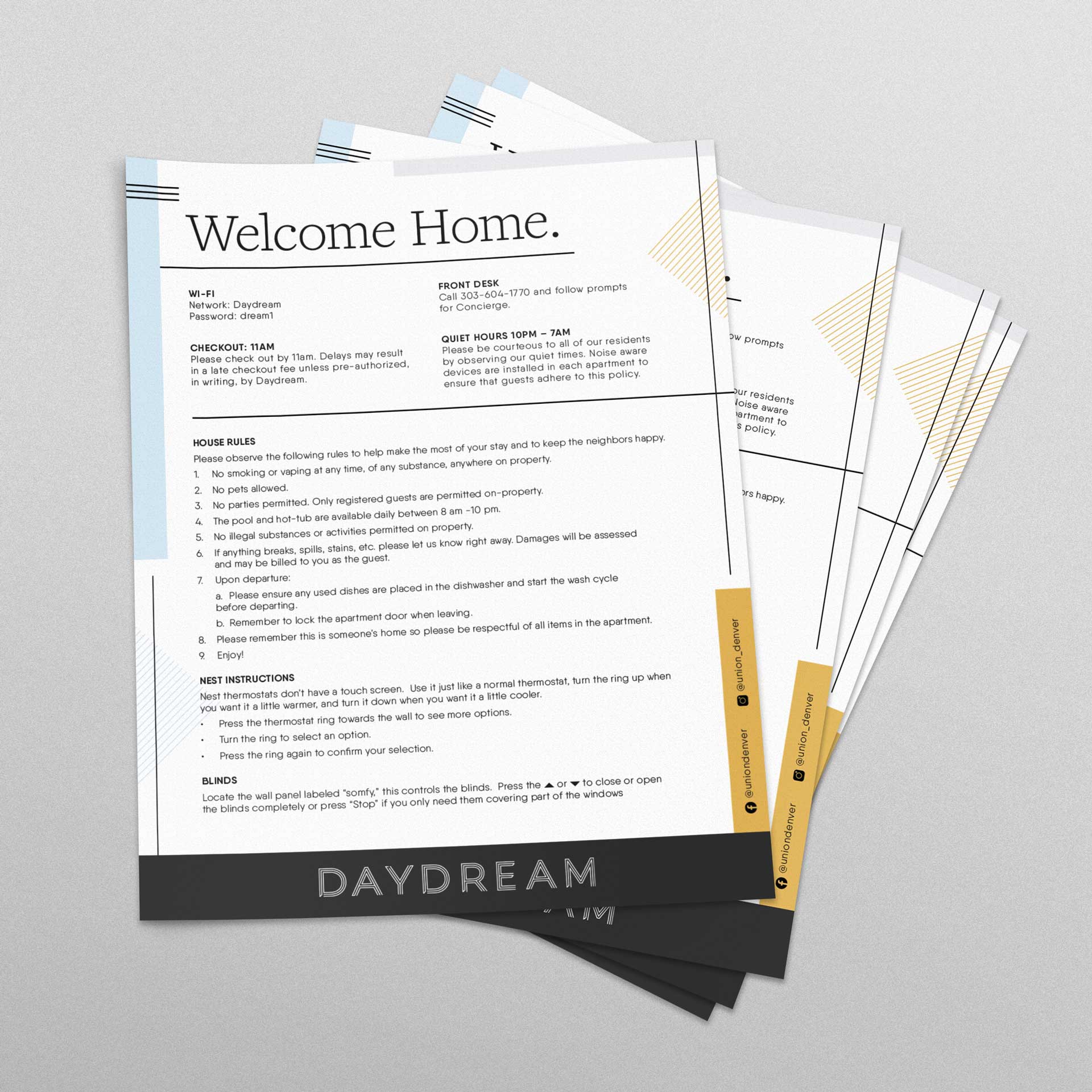 I created print, presentation, and digital assets for residential home-sharing campaigns, ensuring compliance with COVID-19 safety guidelines, while supporting the brand transition from Daydream Apartments to Sentral.