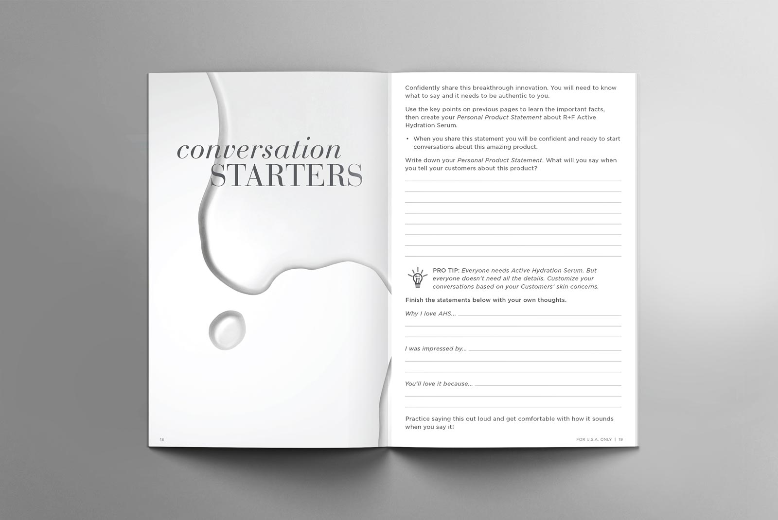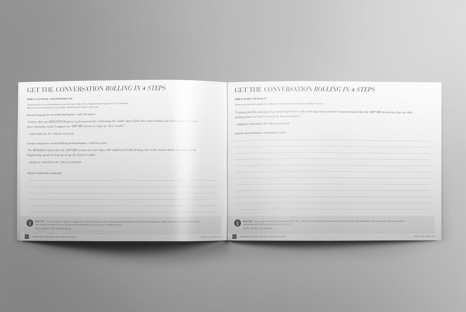 I created the following training guides to assist Consultants in learning about and selling products that are seasonally relevant or align with recent product launches. These guides were carefully designed with a focus on product spotlights, testimonials, sections for activities and note-taking, examples of sample language, and tips to enhance engagement.