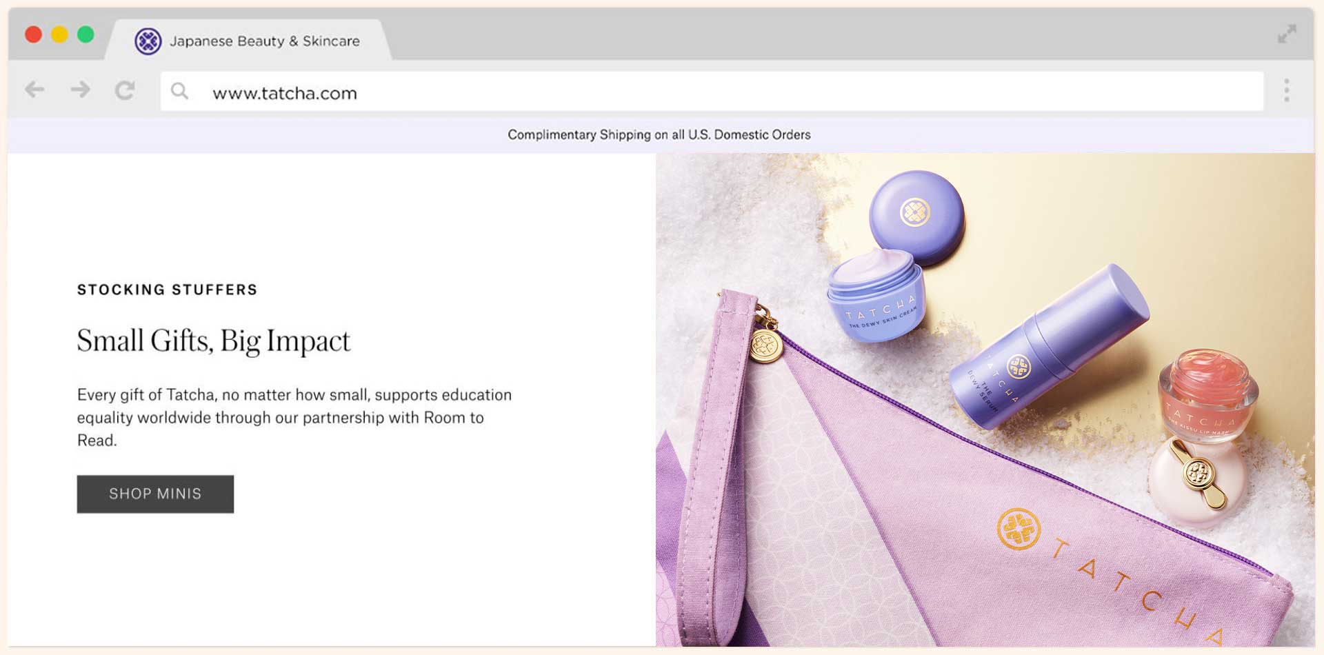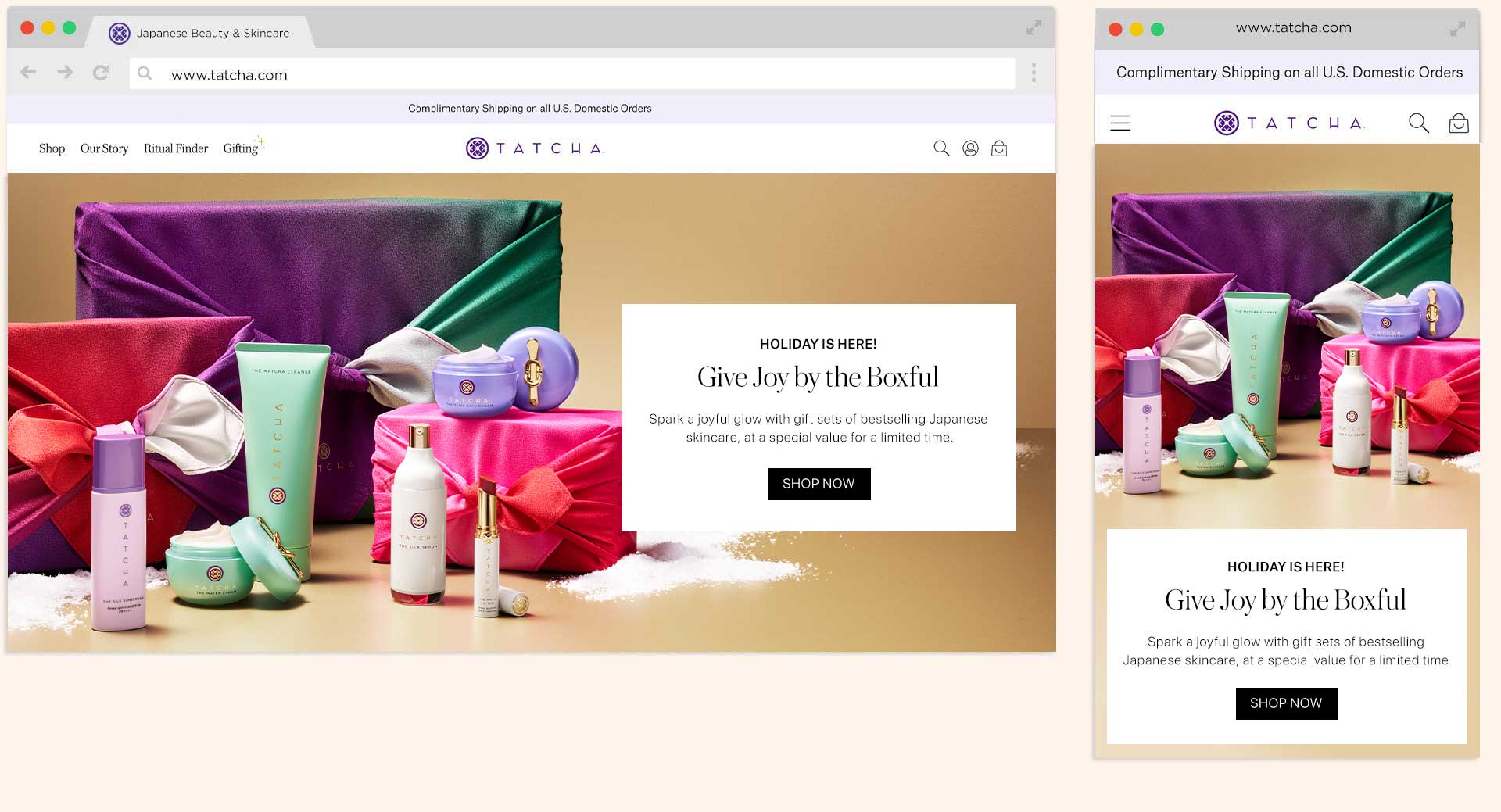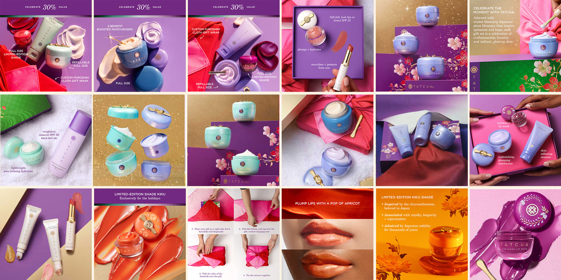 The largest tentpole event at Tatcha is the yearly Holiday campaign, it is the most important campaign as it makes up 50% of the company's yearly revenue. During this time Tatcha carries specially curated limited-edition product bundles for the company site, Sephora, and Ulta stores.