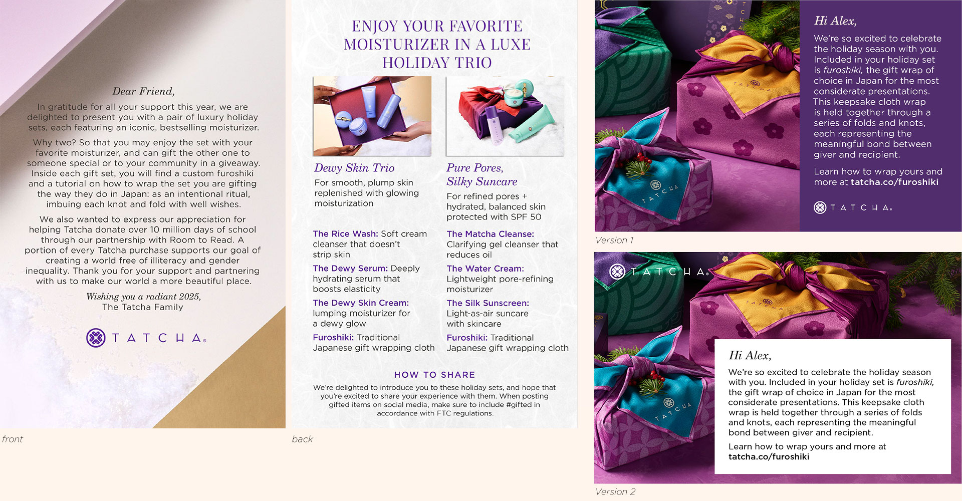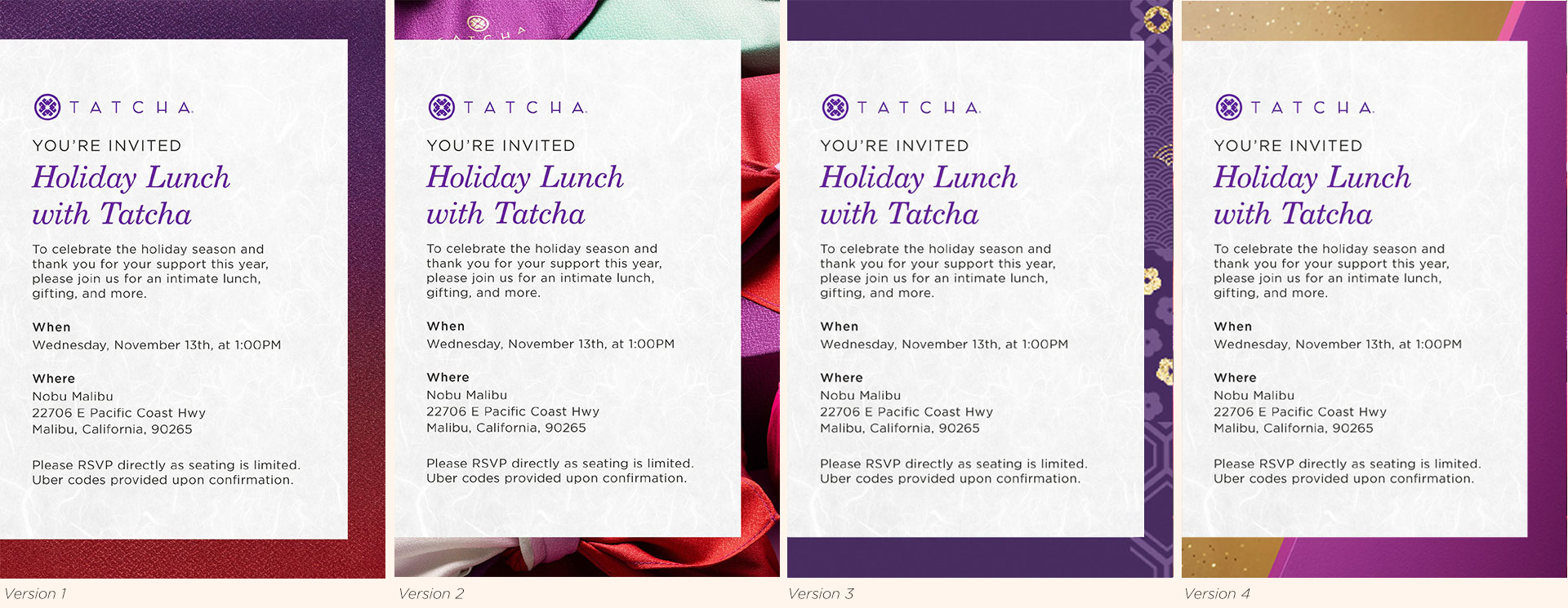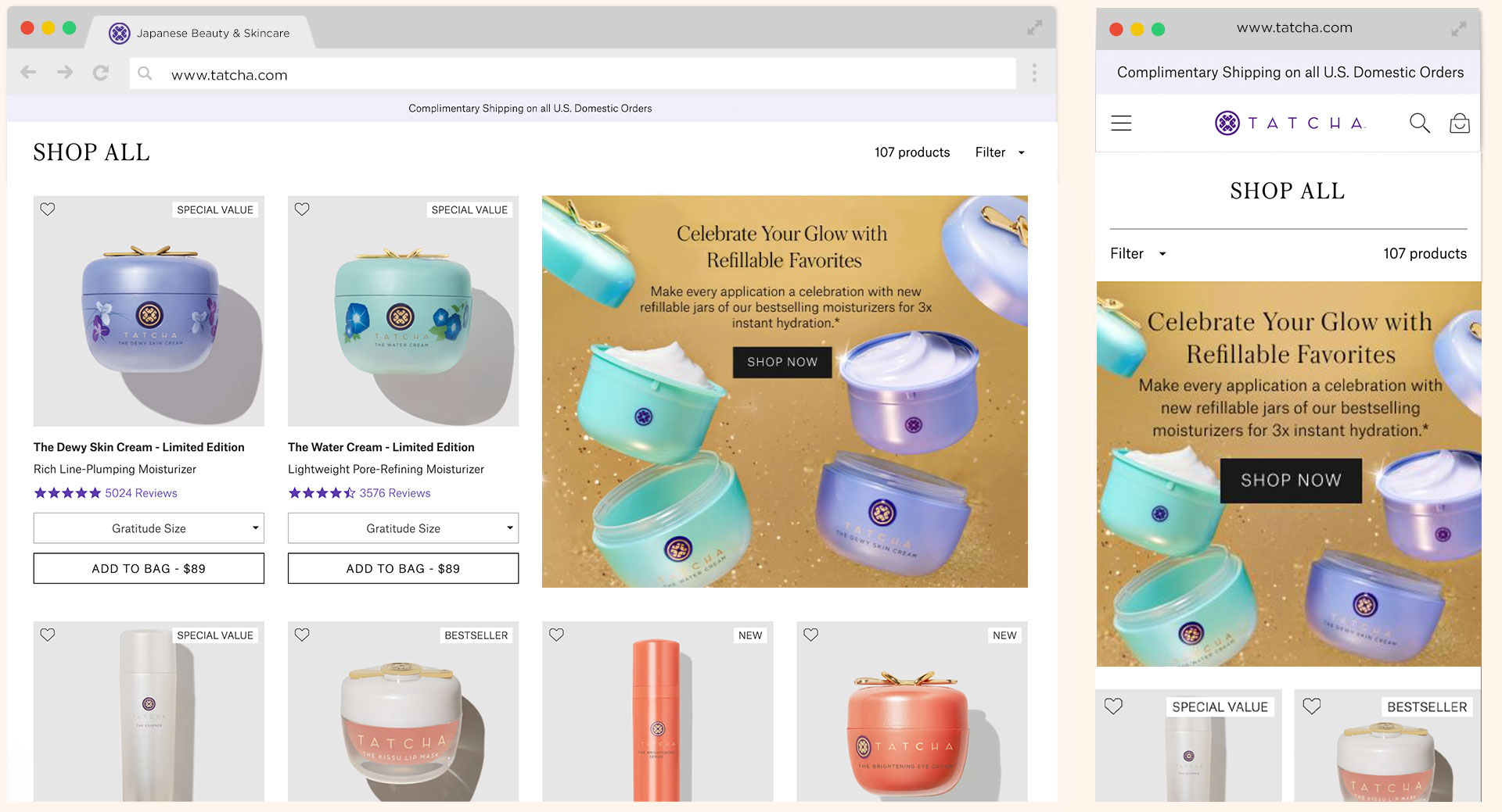 The largest tentpole event at Tatcha is the yearly Holiday campaign, it is the most important campaign as it makes up 50% of the company's yearly revenue. During this time Tatcha carries specially curated limited-edition product bundles for the company site, Sephora, and Ulta stores.
