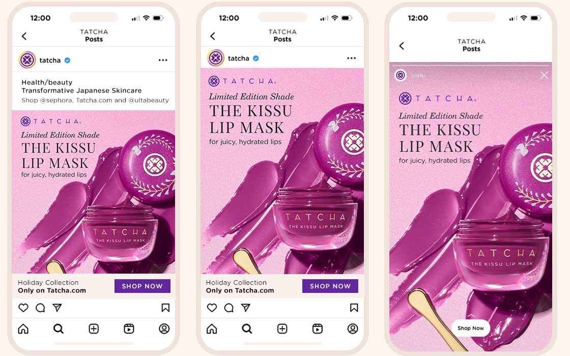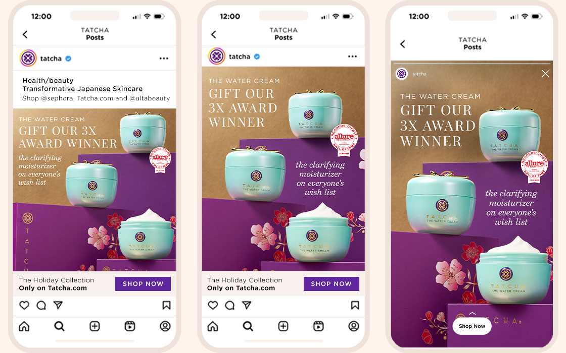 Digital banners created for Tatcha and Sephora, intended for display in various paid advertising placements.